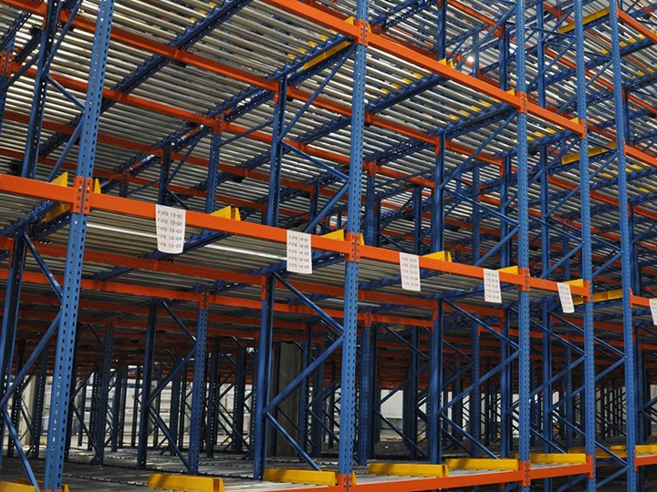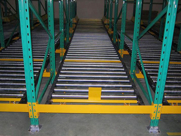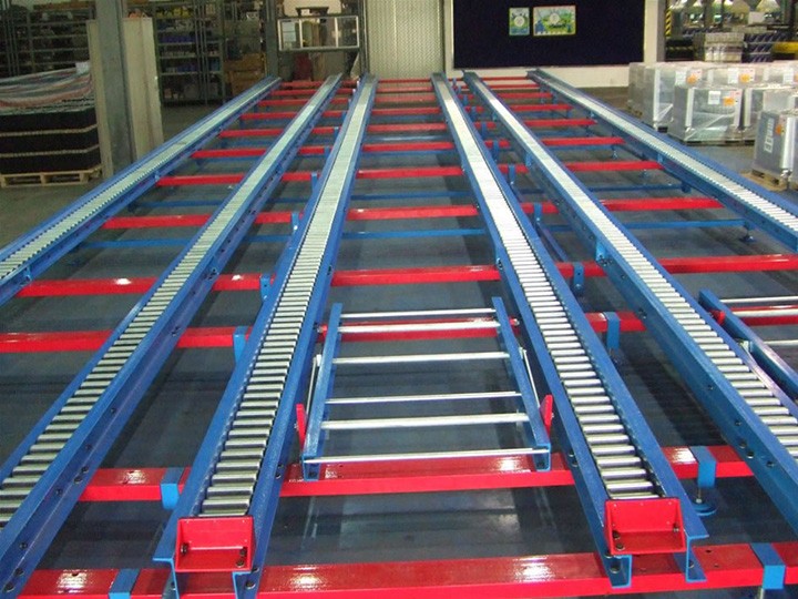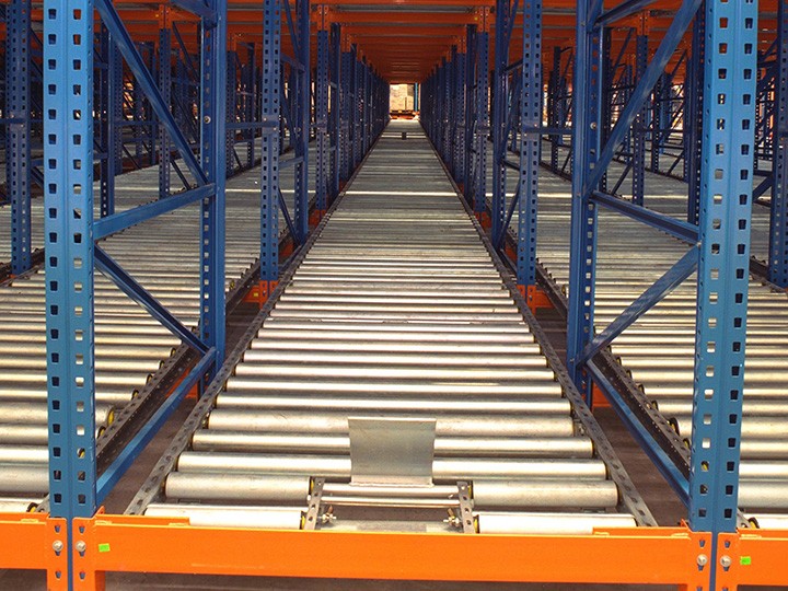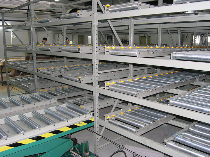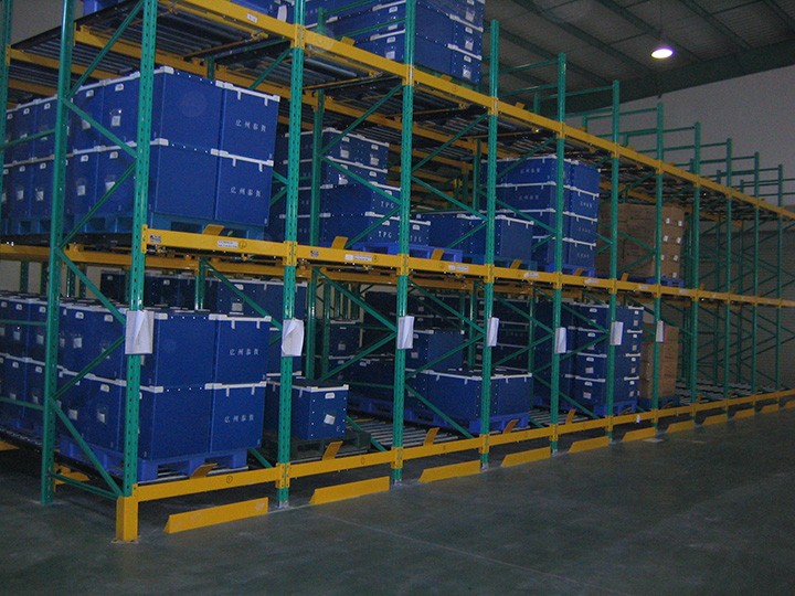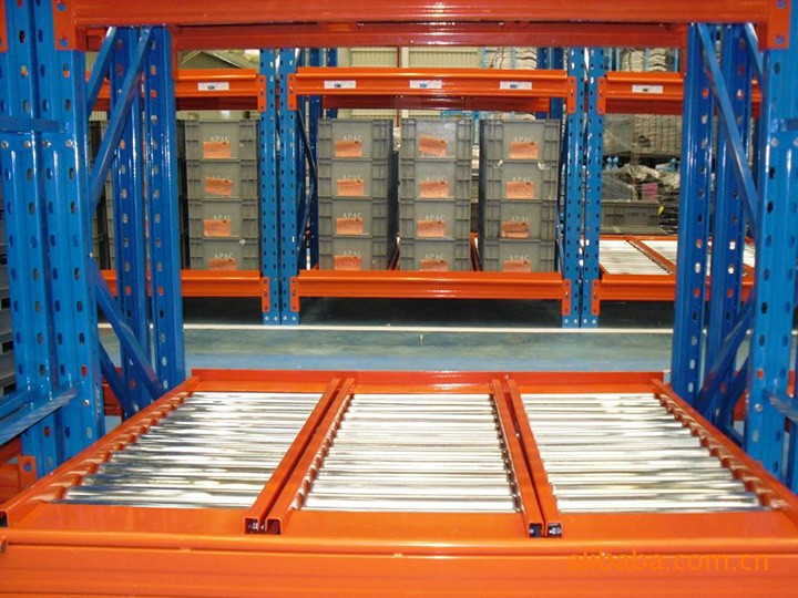 重力式貨架又稱輥筒式貨架,是一種節(jié)約空間、結(jié)構(gòu)緊湊的系統(tǒng)。貨架區(qū)域不設(shè)內(nèi)部通道,只有出貨和進(jìn)貨通道。對于分揀貨物,這種系統(tǒng)時(shí)最快、最經(jīng)濟(jì)的分揀系統(tǒng)。