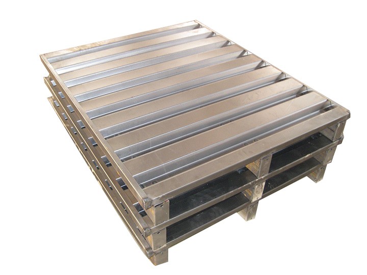 鋼制托盤(鋼托盤)適合叉車作業(yè),存取貨物方便。主要用于多用途的地面存儲、貨架存儲及貨物聯(lián)運、周轉(zhuǎn)等超輕金屬托盤系列。集裝、堆放、搬運和運輸?shù)姆胖米鳛閱卧摵傻乃狡脚_裝置,是現(xiàn)在工業(yè)重要的倉儲與運輸輔助設備之一。主要材料為鋼材或鍍鋅鋼板,經(jīng)專用設備成型,各種型材相互支撐,鉚釘連接加強,再經(jīng)CO2氣體保護焊焊接而成。