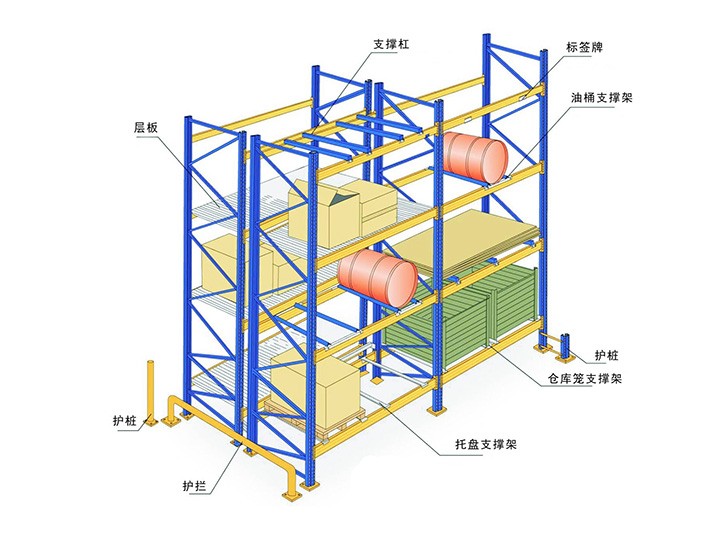 4、橫梁式貨架單根立柱高度可達(dá)12米,托盤貨架的可塑型非常大,在托盤貨架基礎(chǔ)上搭建模具貨架、閣樓貨架、立體庫貨架等還可做成特殊的油桶貨架等。